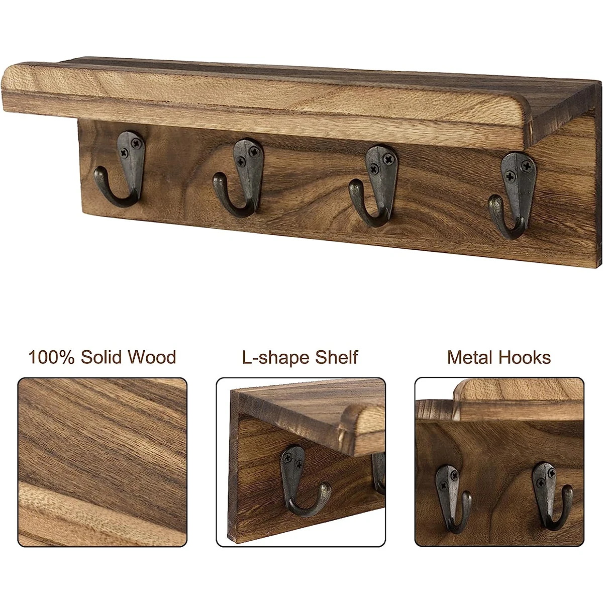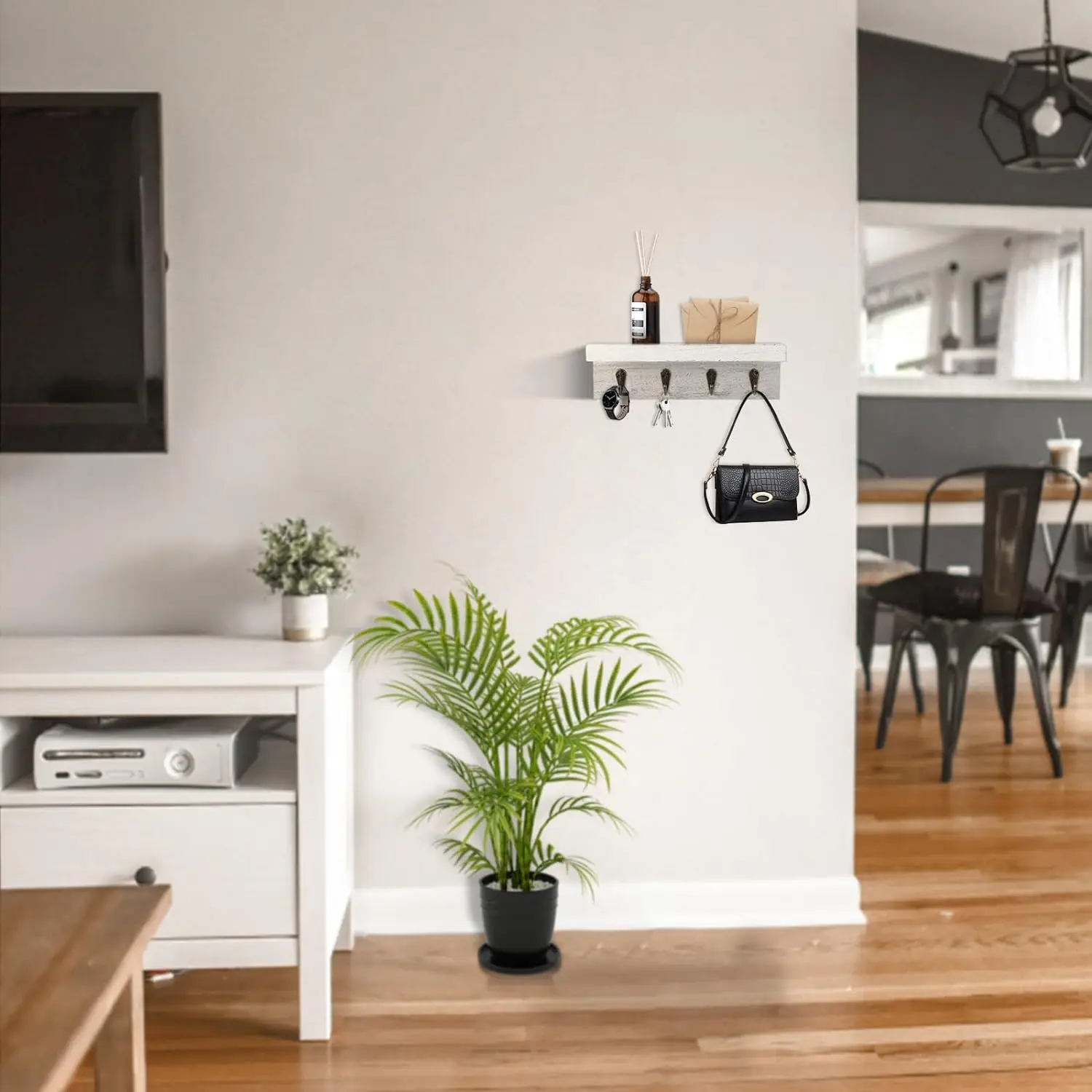 Key Holder for Wall Rustic Mounted Shelf with 4 Hooks Wooden Mail Organizer